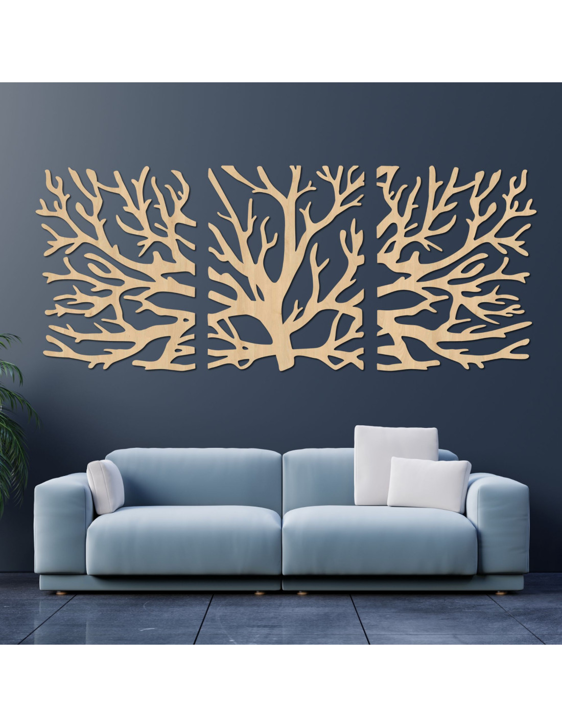 Tablou din lemn în trei părți Copac – eleganță și armonie pentru interiorul tău
