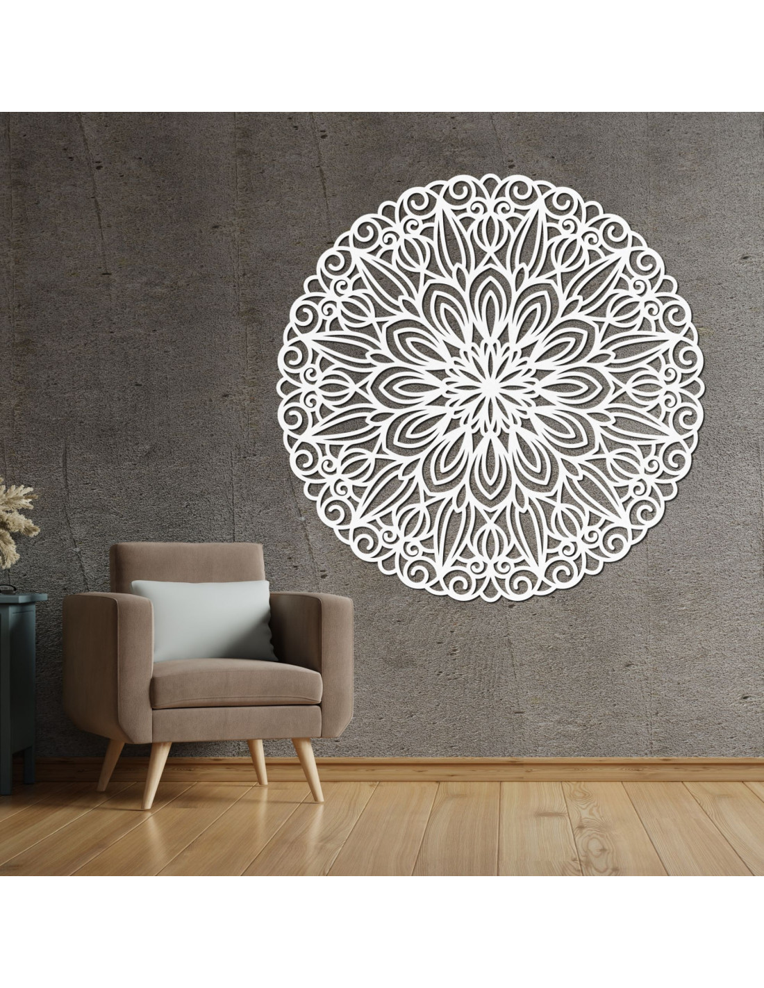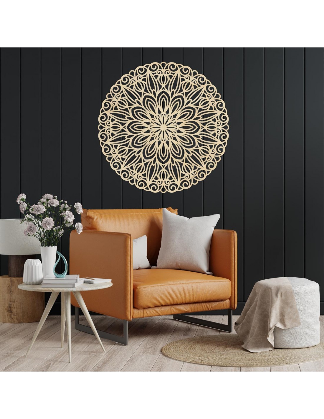 Această mandală din lemn este un element de design elegant care va transforma orice interior într-un loc de pace și armonie.